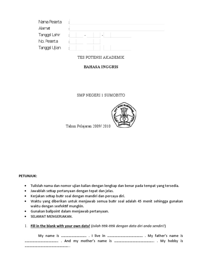 Tes potensi akademik,-atau sering disingkat tpa biasanya dilakukan pada saat ujian masuk perguruan tinggi, melanjutkan s1/s2/s3, seleksi cpns/bumn, seleksi masuk kerja dan lain-lain. Contoh soal tes potensi akademik sbmptn dan jawabannya kumpulan soal tes potensi akademik (tpa) untuk sbmptn yang kemungkinan akan muncul pada soal-soal nantinya. disini admin informasi snmptn dan sbmptn akan sedikit share mengenai soal sbmptn beserta jawabannya. Contoh soal tes verbal potensi akademik dan kunci jawaban pada kesempatan kali ini saya akan memberikan kumpulan contoh soal lengkap untuk tes potensi akademik tpa dengan tema soal tes verbal yang berjumlah 114 soal yang lengkap dengan kunci jawabannya. sehingga sobat dapat belajar dirumah tanpa kebingungan dengan jawaban yang masih belum di mengerti. Contoh soal tes verbal potensi akademik dan kunci jawaban pada kesempatan kali ini saya akan memberikan kumpulan contoh soal lengkap untuk tes potensi akademik tpa dengan tema soal tes verbal yang berjumlah 114 soal yang lengkap dengan kunci jawabannya. sehingga sobat dapat belajar dirumah tanpa kebingungan dengan jawaban yang masih belum di mengerti.